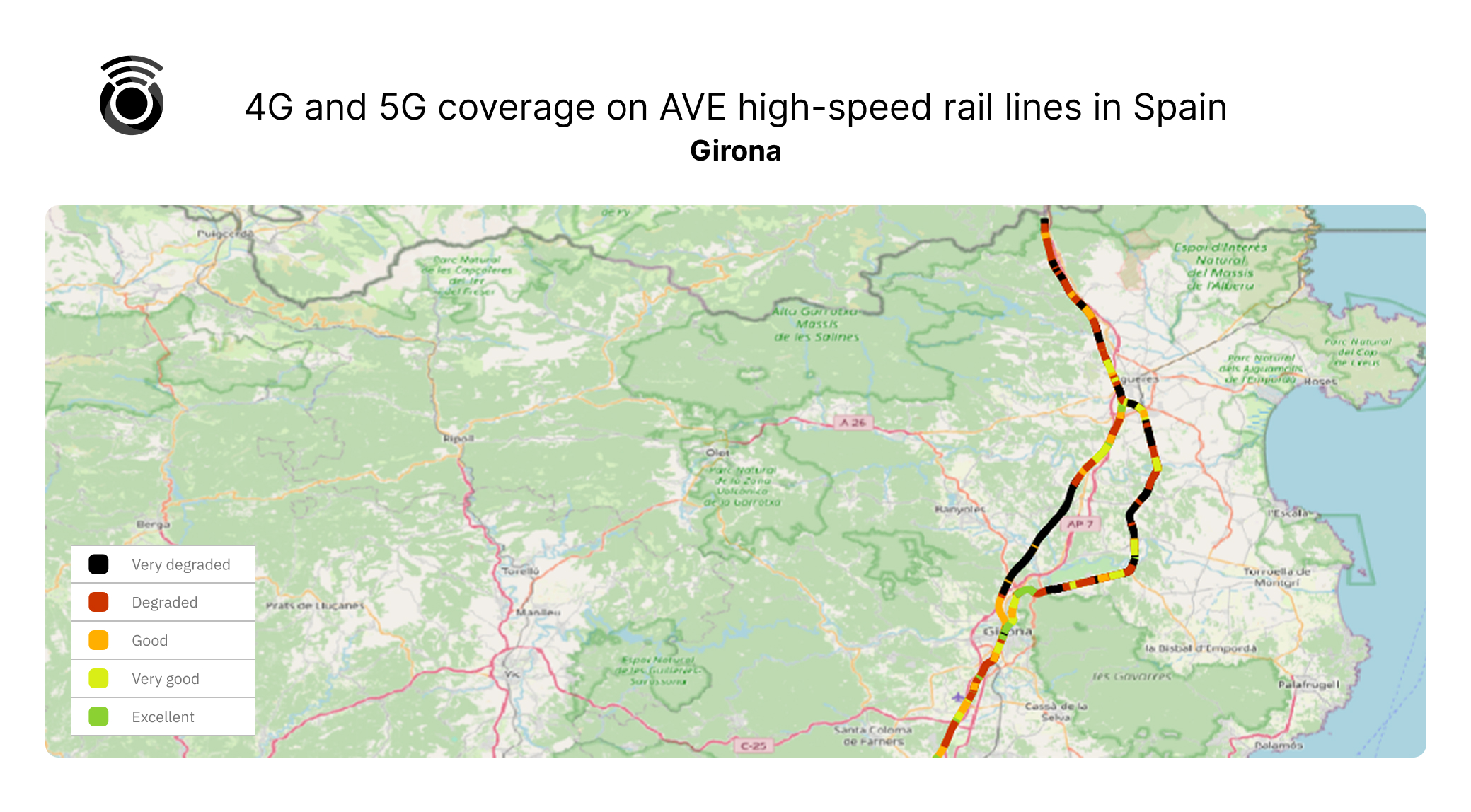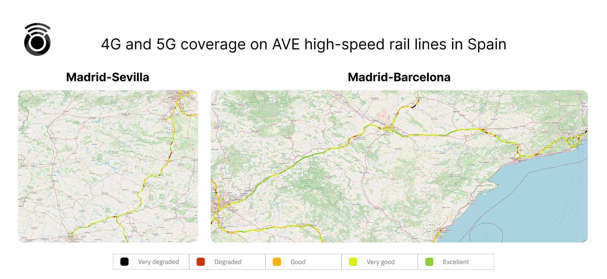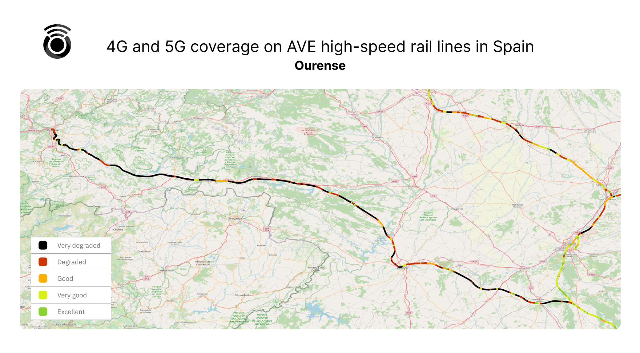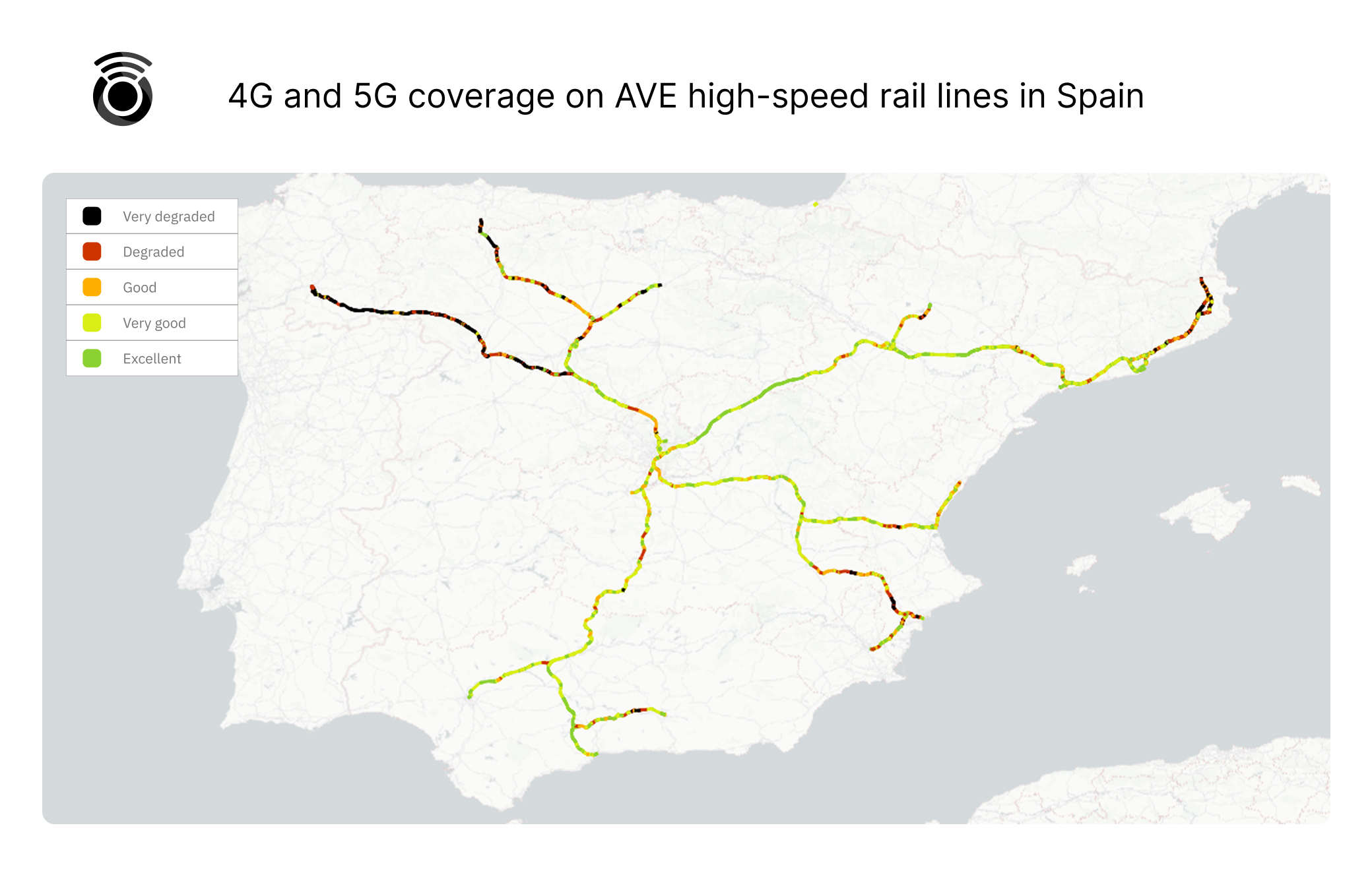 To understand exactly where and how much coverage fails, we analyzed six months of crowdsourced data across the entire Spanish AVE network (June - November 2025). The result is an analysis that highlights the spots where even the best available operator doesn’t provide sufficient quality.